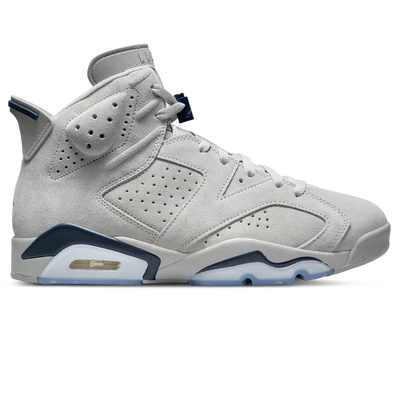 The Air Jordan 6 Retro ‘Georgetown’ showcases the signature colours of the Hoyas, the team that lost to Michael Jordan’s North Carolina Tar Heels in the 1982 NCAA championship game. The legacy silhouette makes use of a grey suede upper with perforated detailing and a Huarache-like inner sleeve. Contrasting navy accents make their way to the heel tab, lace locks, and Jumpman branding hits embroidered on the tongue and back heel. The sneaker rests on a two-tone polyurethane midsole, featuring a visible Air-sole unit in the heel and a translucent rubber outsole underfoot.
